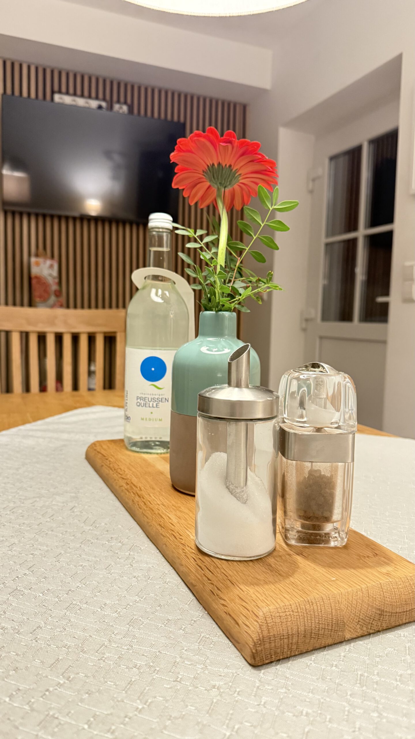 Die große Küche mit Kühl-Gefrierkombination verfügt über einen Esstisch mit Platz für bis zu acht Personen – ideal für gesellige Abende. Im kleineren Apartmentbereich befindet sich zusätzlich eine eigene Einbauküche mit Kühlschrank, Minibar und kompletter Ausstattung.